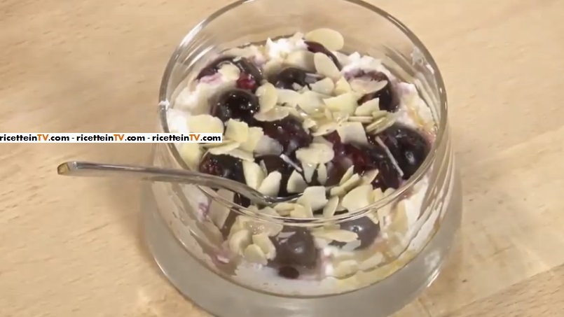 mousse di ricotta con ciliegie e mandorle