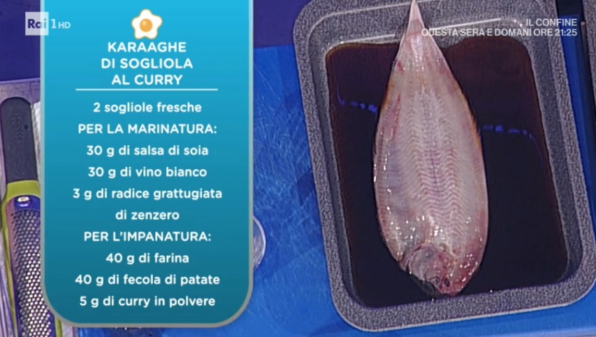 Dopo il primo italianissimo di Annina Moroni, il secondo di pesce di Hiro Shoda. Il cuoco nipponico ci insegna a preparare la sogliola al modo orientale, seguendo una ricetta di sua mamma. Ecco il karaaghe di sogliola al curry.