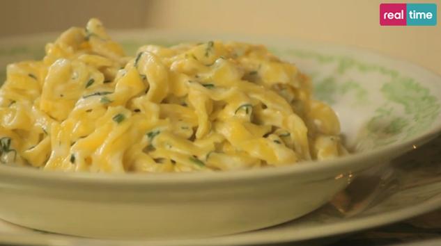 Ingredienti per 2 persone: 300 g di farina di semola di grano duro, 3 uova, 1 cucchiaino di sale fino. Per la salsa: 150 g di mascarpone fresco, 30 g di Parmigiano Reggiano, 15 g di erba cipollina, 15 g di finocchietto, sale macinato al momento.