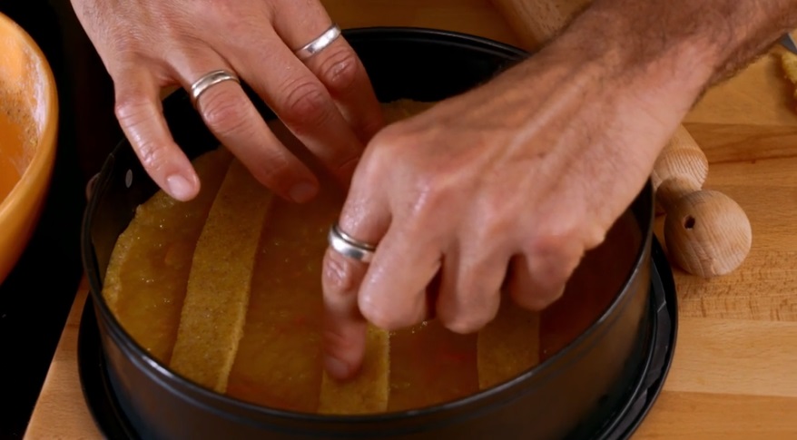 Stendiamo subito il composto con un mattarello all’altezza di circa mezzo cm. La inseriamo all’interno di una tortiera e creiamo un piccolo bordo, formando un salsicciotto con gli scarti di frolla. Spalmiamo sopra della marmellata di arance, meglio se con pochi zuccheri. Possiamo decorare la crostata sovrapponendo delle strisce di frolla sulla marmellata. Inforniamo a 180° per 35-40 minuti. Controllate la cottura: non dev’essere troppo scura.