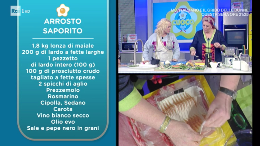 - 1,8 Kg lonza di maiale, 200 g lardo a fette larghe, 1 pezzetto di lardo intero (100 g), 100 g prosciutto crudo a fette spesse, 2 spicchi di aglio, prezzemolo, rosmarino, cipolla, sedano, carota, , vino bianco, olio evo, sale e pepe