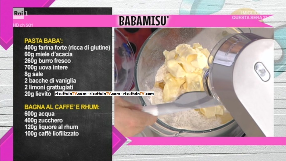- Pasta babà: 400 g farina forte, 60 g miele d’acacia, 260 g burro, 700 g uova, 8 g sale, 2 bacche di vaniglia, 2 limoni grattugiati, 20 g lievito