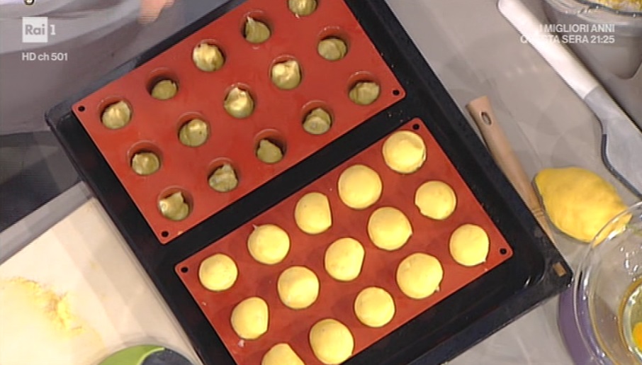 Trasferiamo in un sac a poche e lo inseriamo all’interno degli stampini per babà in silicone. Li riempiamo poco più della metà. Lasciamo lievitare finchè l’impasto forma il classico cappello. Inforniamo a 180° fino a doratura, basteranno pochi minuti.