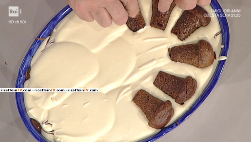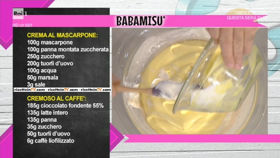 Tagliamo a metà i babà inzuppati e li disponiamo alla base di una pirofila. Copriamo con la crema al mascarpone. Coliamo sopra il cremoso al cioccolato e, con un coltello, formiamo dei decori. Copriamo con altra crema al mascarpone. Finiamo con babà ed una spolverata di cacao amaro in polvere. Possiamo ricavare, con lo stesso procedimento, delle monoporzioni. Deve riposare almeno 6 ore in frigorifero prima di essere consumato.