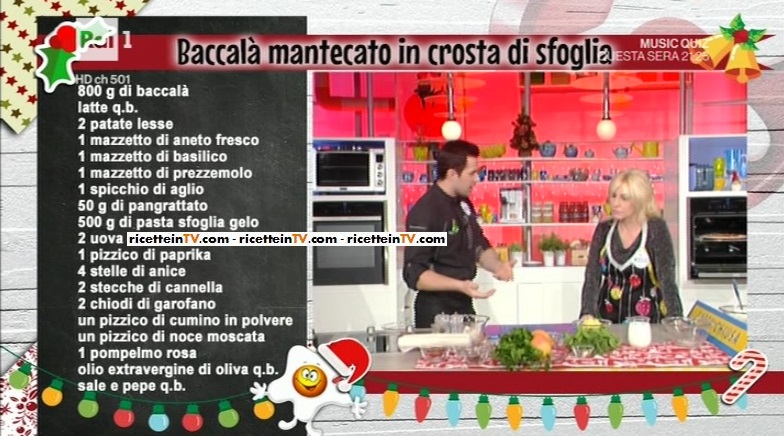 - 800 g di baccalà, latte qb, 2 patate lesse, 1 mazzetto di aneto fresco, 1 mazzetto di basilico, 1 mazzetto di prezzemolo, 1 spicchio di aglio, 50 g di pangrattato, 500 g di pasta sfoglia, 2 uova, 1 pizzico di paprika, 4 stelle di anice, 2 stecche di cannella, 2 chiodi di garofano, un pizzico di cumino in polvere, un pizzico di noce moscata, 1 pompelmo rosa, olio evo, sale e pepe qb