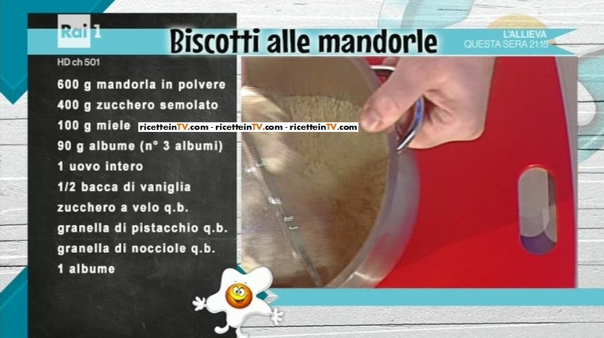 Chiude il menu odierno un dolcetto delizioso, preparatoci dal maestro pasticciere Mario Ragona. Un biscottino da accompagnare al tè, nato in Sicilia: i biscotti alle mandorle.