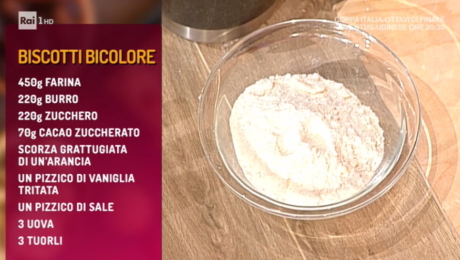 Alessandra Spisni, in pochi minuti e con pochissimi ingredienti, ci insegna a preparare dei biscottini golosissimi, perfetti per la colazione o la merenda. Ecco i biscotti bicolore di Alessandra.