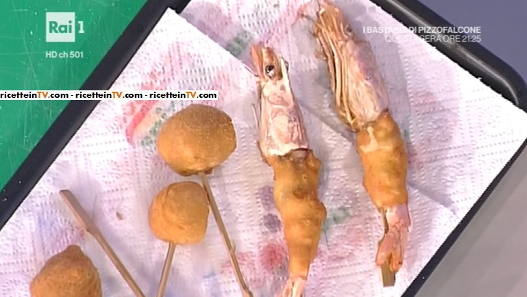 - Per i bocconcini: 1 zucchina, 4 fette di prosciutto crudo, 2 mini scamorze, 2 gamberoni, 100 g pangrattato, paprika in polvere, sale