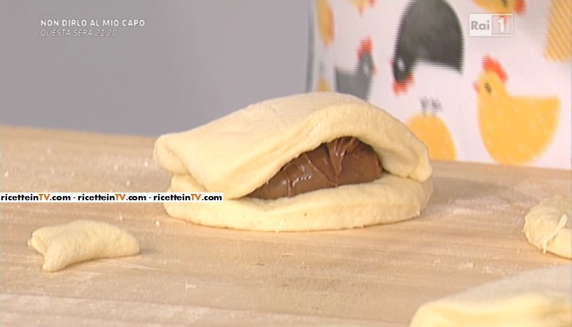 Partiamo dall’impasto: in una ciotola, misceliamo insieme il sale con lo zucchero; uniamo il lievito e la scorza di limone grattugiata; aggiungiamo un po’ di panna e lavoriamo, in modo da sciogliere il lievito. Uniamo le uova sgusciate, quindi incorporiamo, pian piano, la farina, impastando per bene il tutto (Alessandra raccomanda di non lavorarla troppo). Uniamo, se serve, altra panna, in modo da ottenere un composto morbido ed omogeneo. Lasciamo lievitare, coperto da pellicola, fino al raddoppio dell’impasto. Stendiamo la pasta, lasciandola spessa; ricaviamo dei dischi più grandi ed altri appena più piccoli; mettiamo sui dischi più grandi una cucchiaiata di ripieno (crema, crema al cioccolato o marmellata) e sovrapponiamo il disco più piccolo, sigillando per bene i bordi (bagnate con acqua per far aderire meglio la pasta). Lasciamo lievitare, coperti da pellicola, per un’altra mezz’ora. Li friggiamo in olio o strutto a temperatura; a doratura, scoliamo su carta assorbente e spolveriamo con zucchero semolato o a velo.