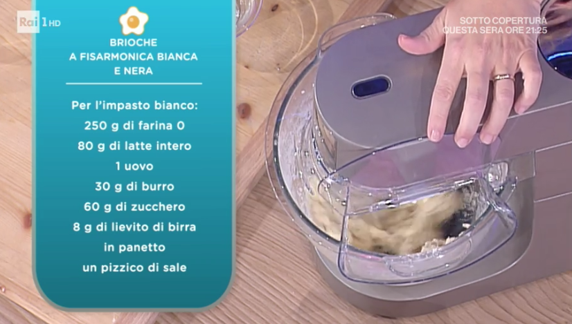 - Impasto al cacao: 220 g farina 0, 30 g cacao amaro, 80 g latte intero, 1 uovo, 30 g burro, 60 g zucchero, 8 g lievito di birra in panetto, un pizzico di sale