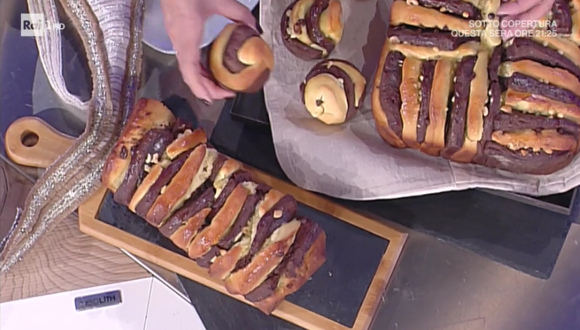 Ottenuto un composto liscio, lo mettiamo a lievitare, coperto con la pellicola, fino al raddoppio (possiamo impastarlo la sera e farlo lievitare tutta la notte in frigorifero). Seguiamo lo stesso procedimento per l’impasto al cacao.
