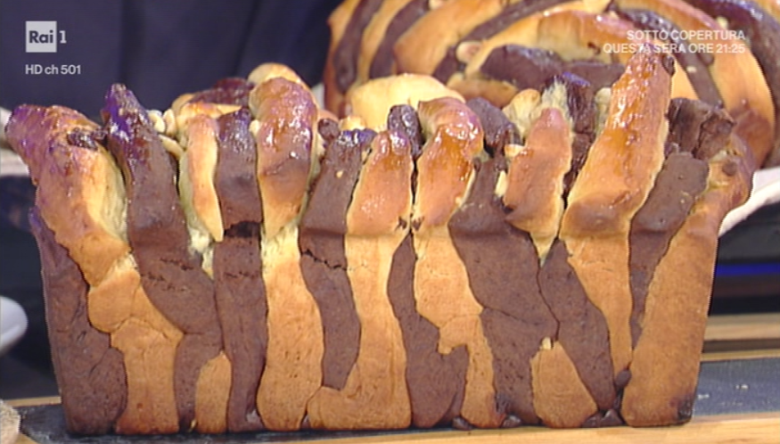 Tagliamo a fettone e posizioniamo le stesse all’interno di uno stampo da plumcake in verticale. Lasciamo lievitare ancora mezz’ora. Infine inforniamo a 170° per 45-50 minuti. Una volta sfornato, possiamo lucidare con miele o confettura di albicocche.