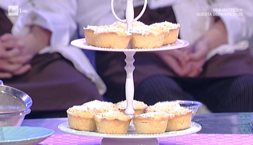 Farciamo i gusci di frolla già cotta e fredda con la crema di riso. Inforniamo nuovamente, forno ventilato a 180°, per 15 minuti circa. Devono dorarsi appena. Completiamo con zucchero a velo.