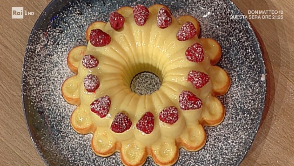 Ottenuto un composto omogeneo, lo versiamo all’interno di uno stampo a ciambella ben imburrato. Cuociamo in forno caldo e statico a 170° per 1 ora (vale la prova stecchino). Lasciamo raffreddare e mettiamo in frigorifero per qualche ora (meglio se preparato il giorno prima).