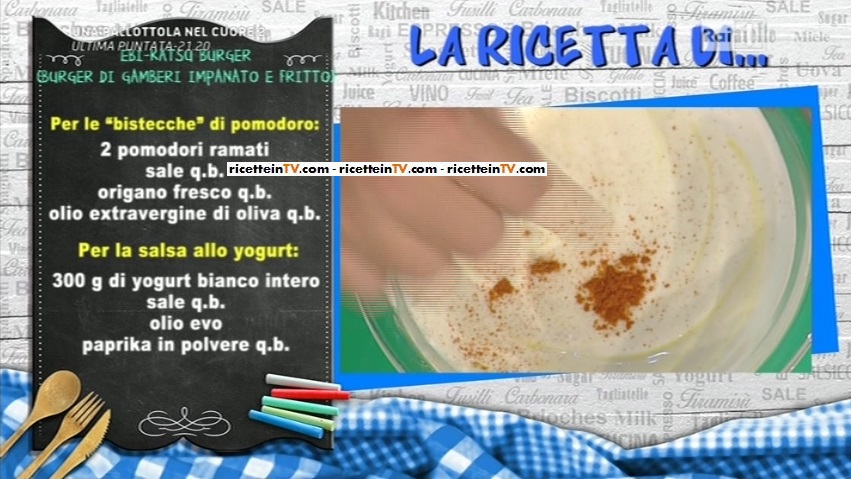 Tritiamo grossolanamente i gamberi già puliti e li condiamo con sale e pepe; mescoliamo con la fecola di patate e la cipolla tritata. Lavoriamo. Intanto, prepariamo la pastella, mescolando l’uovo, un goccio d’acqua e la farina; lavoriamo bene. Spennelliamo con la pastella delle polpettine create con il composto di gamberi; passiamo nel pangrattato delicatamente; facciamo riposare in frigorifero per almeno 10 minuti e friggiamo in padella con un dito d’olio. Scaldiamo il pane, tagliato a metà, sulla griglia. Tagliamo i pomodori in grosse fette e li facciamo arrostire sulla griglia con un pizzico di origano. Per la salsa, condiamo lo yogurt con sale, olio evo e paprika in polvere. Quindi, farciamo il panino con il burger, due fette di pomodoro, insalata e salsa allo yogurt.