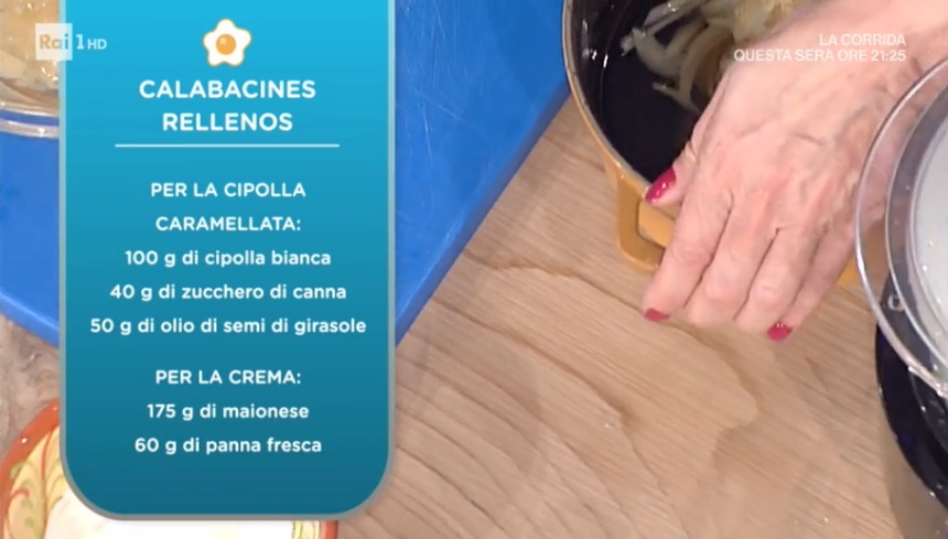 A chiudere il menu settimanale è il piatto pensato e proposto da David Povedilla. Una ricetta dal sapore iberico per lo scatenato cuoco, che prepara una ricetta antica, a base di zucchine. Prepariamo le calabacines rellenos.