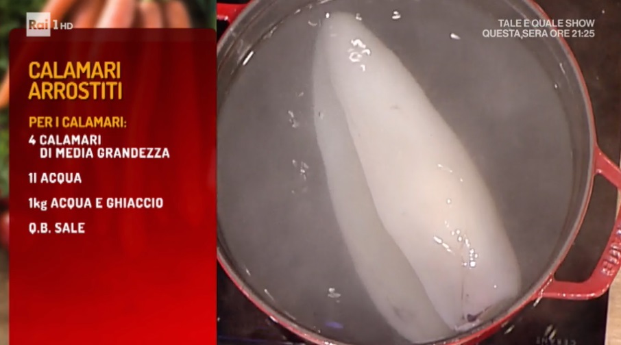 - 4 calamari di media grandezza, 1 l acqua, 1 Kg acqua e ghiaccio, sale