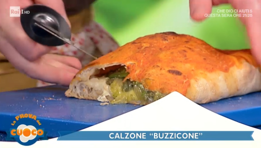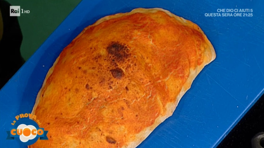 Allarghiamo i panetti su un piano infarinato, in modo da ottenere un disco sottile anche sui bordi. Su una metà del disco, mettiamo la provola affumicata a listarelle, sopra il castelmagno e la scarola ripassata in padella. Richiudiamo il calzone a mezzaluna, sigillando bene i bordi. Spennelliamo esternamente con il pomodoro mescolato ad un po’ di olio.