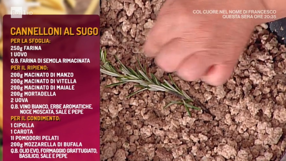 - Ripieno: 250 g manzo, 200 g vitela, 200 g maiale, 200 g mortadella, 2 uova, vino bianco, erbe aromatiche, noce moscata, sale, pepe