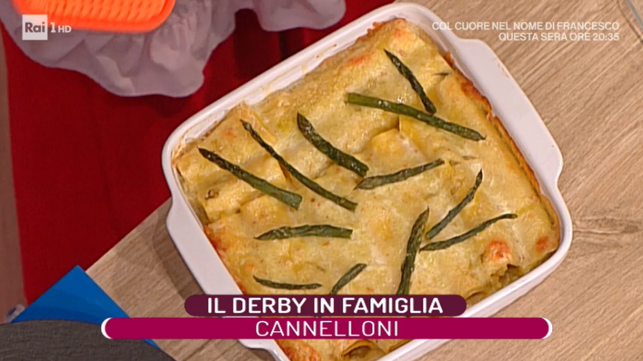 Su una pirofila, formiamo uno strato di besciamella ed adagiamo sopra i cannelloni. Copriamo con la besciamella rimasta, decoriamo con le punte d’asparagi e inforniamo a 180° per 20 minuti circa, forno preriscaldato e ventilato.