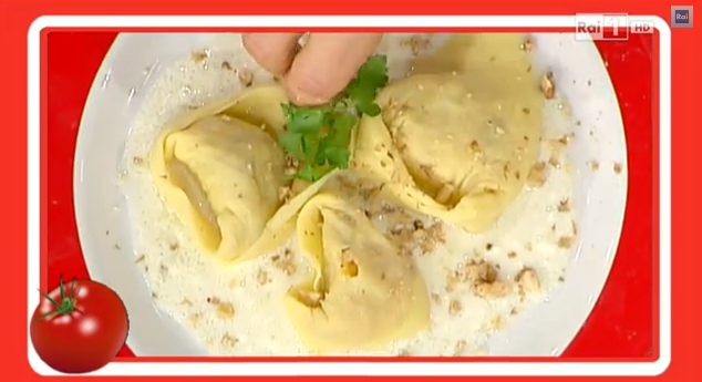Nella puntata odierna de La prova del cuoco, nel segmento finale, dedicato alla gara tra cuochi, Cesare Marretti ha proposto la ricetta dei cappellacci di zucca e squacquerone.