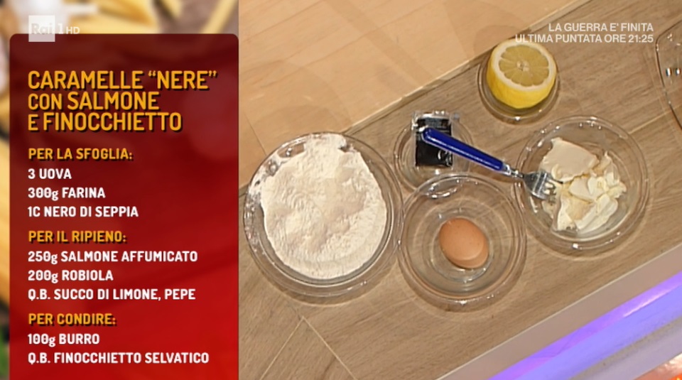 - Sfoglia: 3 uova, 300 g farina, 1 c nero di seppia