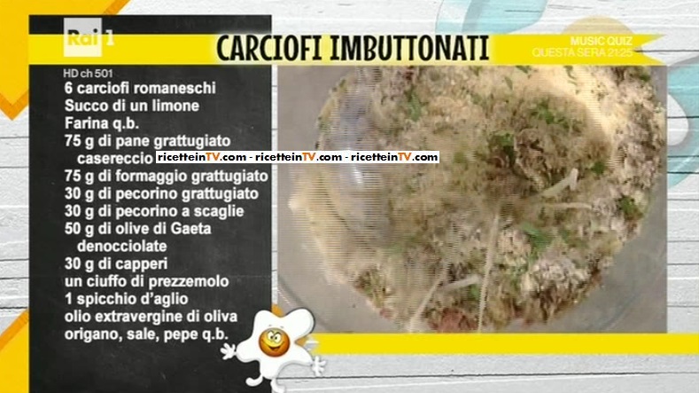 Dopo lo street food, l’attesa ricetta di Annina Moroni, che prepara il secondo piatto. E’ periodo di carciofi, quindi, Anna consiglia di cucinarli in tutti i modi! Oggi, una ricetta del sud Italia. Ecco come preparare i carciofi imbuttonati.