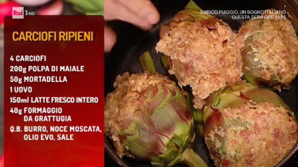 - 4 carciofi, 200 g polpa di maiale, 50 g mortadella tritata, 1 uovo, 150 ml latte intero, 40 g formaggio grattugiato, burro, noce moscata, olio evo, sale