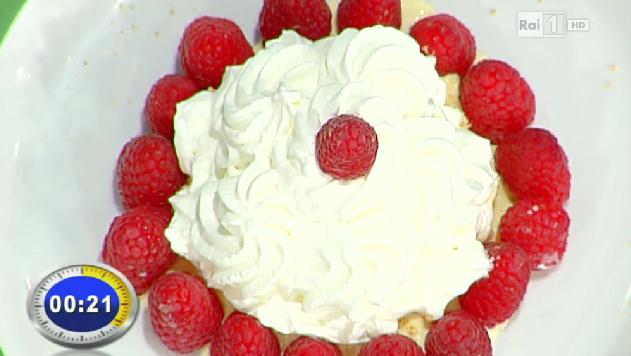 Nella puntata odierna de La prova del cuoco, nel segmento finale, dedicato alla gara tra cuochi, Cesare Marretti ha proposto la cheesecake veloce con mascarpone e lamponi.