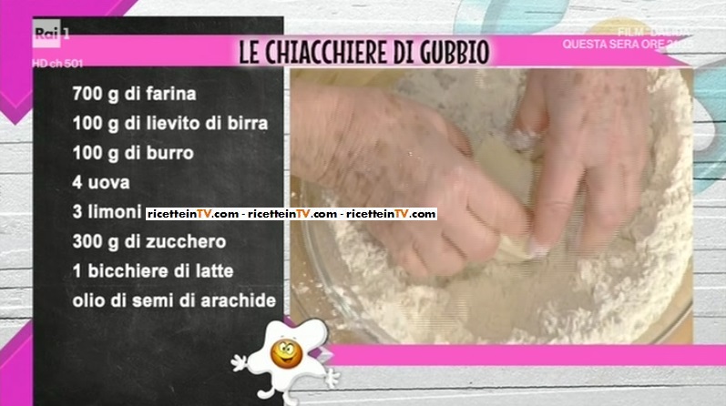 Infine, ci concediamo una coccola! O meglio, è Annina Moroni a coccolarci con uno dei suoi imperdibili dolcetti. In vista del Carnevale, ormai prossimo, la cuoca ci prepara le chiacchiere di Gubbio. La ricetta è di un’amica di Anna, che ha 90 anni…