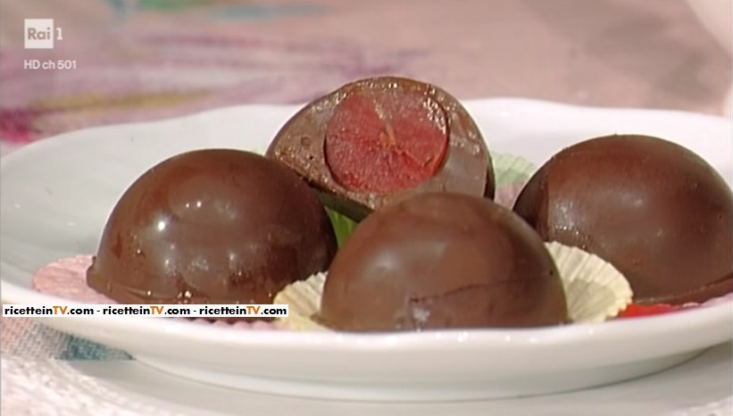 Sciogliamo il cioccolato a bagnomaria. Riempiamo per metà degli stampini in silicone a mezza sfera. Inseriamo al centro di ciascuna mezza sfera una ciliegia sotto spirito. Copriamo con altro cioccolato fondente. Con una spatola, lisciamo la superficie.