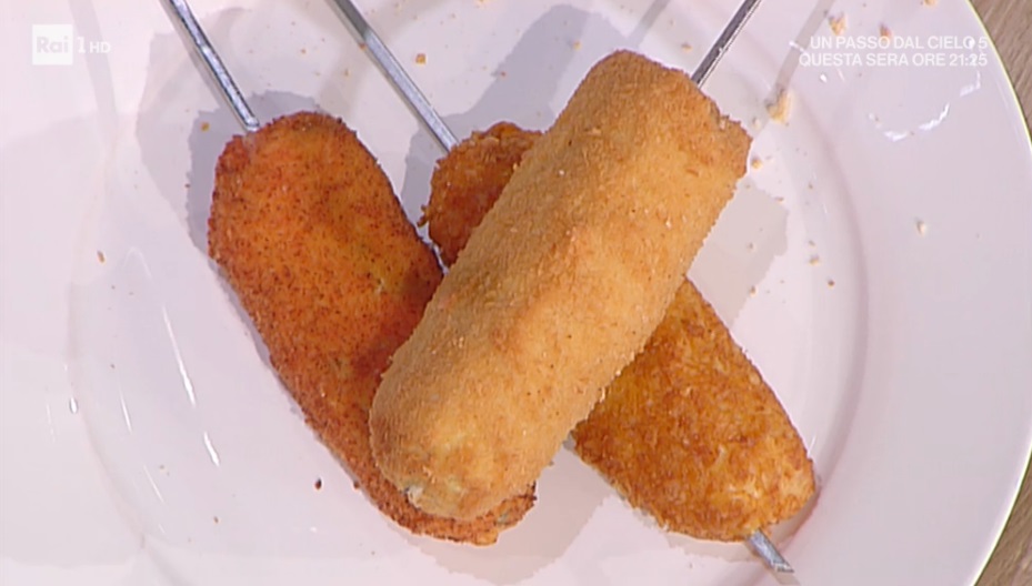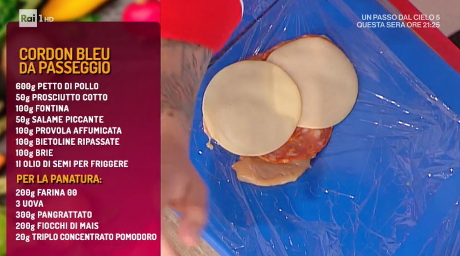 - 600 g petto di pollo, 50 g prosciutto cotto, 100 g fontina, 50 g salame piccante, 100 g provola affumicata, 100 g bietoline ripassate, 100 g brie, 1 l olio per friggere