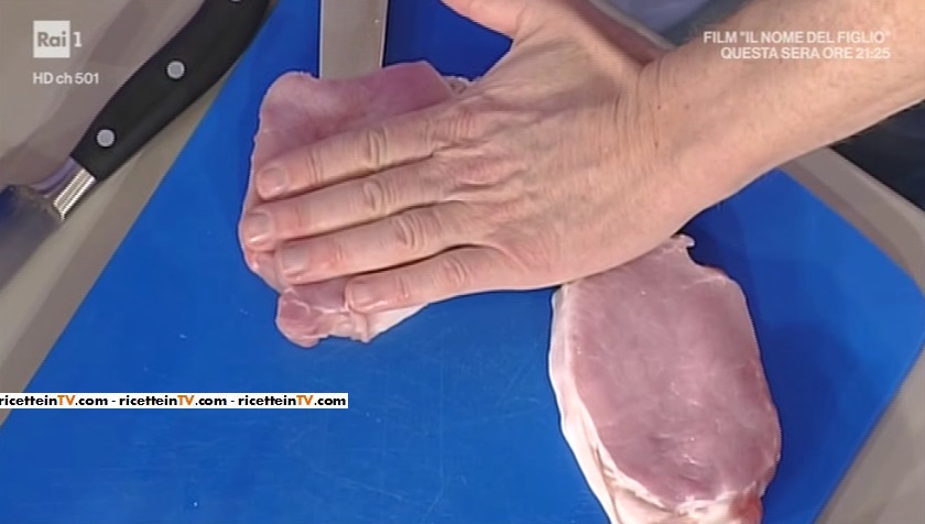 Utilizzeremo la lonza di maiale. Tagliamo due fette spesse di lonza (devono essere dello spessore di un dito). Incidiamo ciascuna fetta al centro, in modo da ricavare una tasca. All’interno, mettiamo una dadolata di formaggio e prosciutto cotto (i cubetti devono essere piccoli). Chiudiamo l’apertura con uno stuzzicadenti. Per la panatura, misceliamo il pangrattato con le noci e le mandorle. Inseriamo in un mixer e tritiamo il tutto, in modo da ottenere una panatura omogenea.