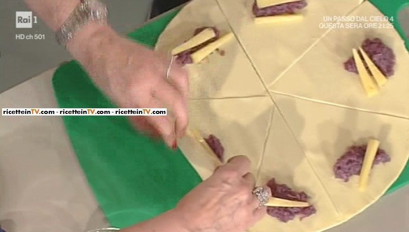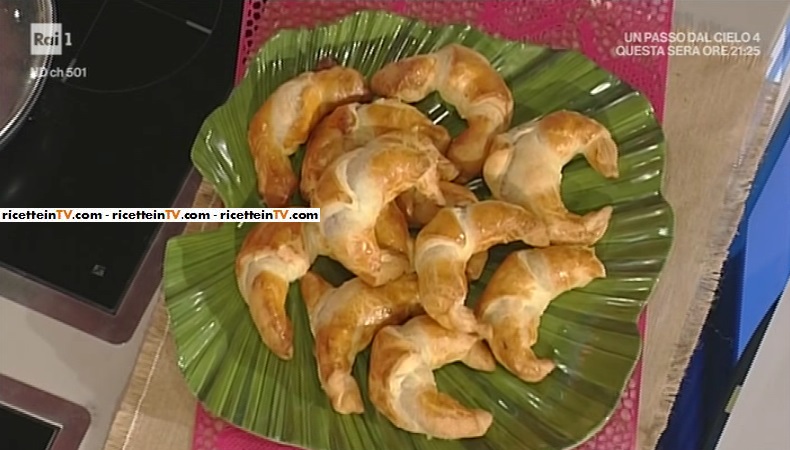 Stendiamo il rotolo di pasta sfoglia già pronta. Tagliamo a spicchi, 6 o 8. Alla base di ciascun spicchio, mettiamo un cucchiaino di composta di cipolle e dei tocchetti di fontina o formaggio a scelta. Arrotoliamo, stretti, partendo dalla base verso l’apice dello spicchio. In una ciotolina, sbattiamo l’uovo. Disponiamo i cornetti su una teglia foderata di carta e spennelliamo con l’uovo sbattuto. Inforniamo a 200°, forno statico e caldissimo, fino a doratura.