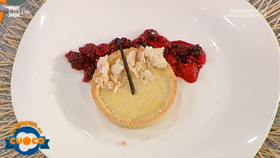 Farcia: montiamo l’uovo intero con lo zucchero, il succo e la scorza grattugiata del limone. Uniamo quindi la farina di mandorle e la vaniglia. Versiamo la crema ottenuta all’interno del guscio di frolla precotto ed inforniamo nuovamente a 140° per 20 minuti. Deve formarsi una sottile crepa in superficie.