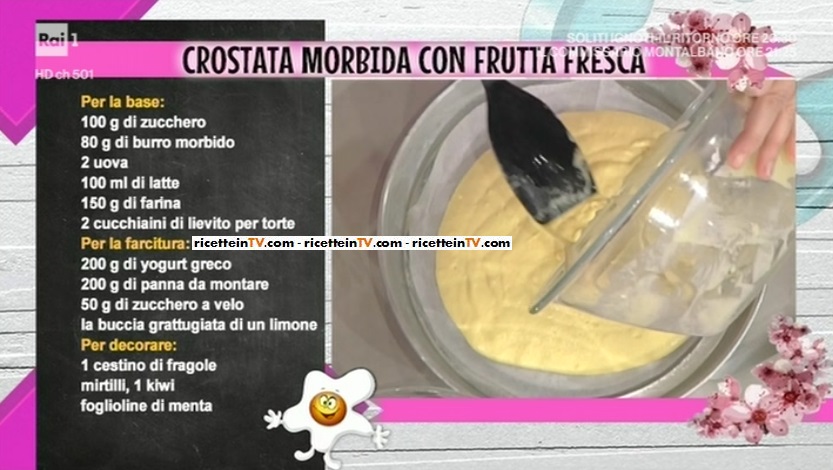 Finalmente il dolce! A prepararcelo, anche questo lunedì, la dolcissima Natalia Cattelani. Una proposta casalinga, creativa e golosissima. L’ennesima torta, oggi squisitamente primaverile. Vediamo come preparare la crostata morbida con frutta fresca.
