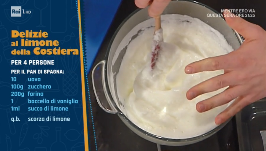 delizie al limone di Totaro e RinaldoNel duello d’apertura, quello delle città, dedicato alla torta alla frutta, Alessandra Spisni, in rappresentanza di Bologna, e e cuochi Totaro e Rinaldo, per Napoli, hanno proposto i loro dolci casalinghi. I due cuochi, in particolare, hanno preparato le delizie al limone.