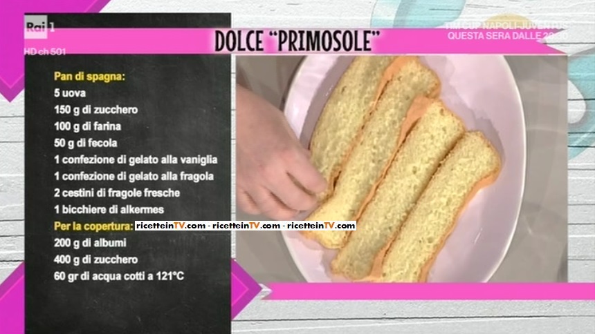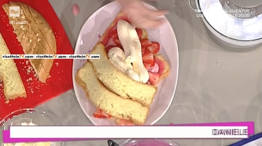 - Pan di Spagna: 5 uova, 150 g zucchero, 100 g farina, 50 g fecola, 1 confezione di gelato alla vaniglia, 1 confezione di gelato alla fragola, 2 cestini di fragole, 1 bicchiere di Alchermes