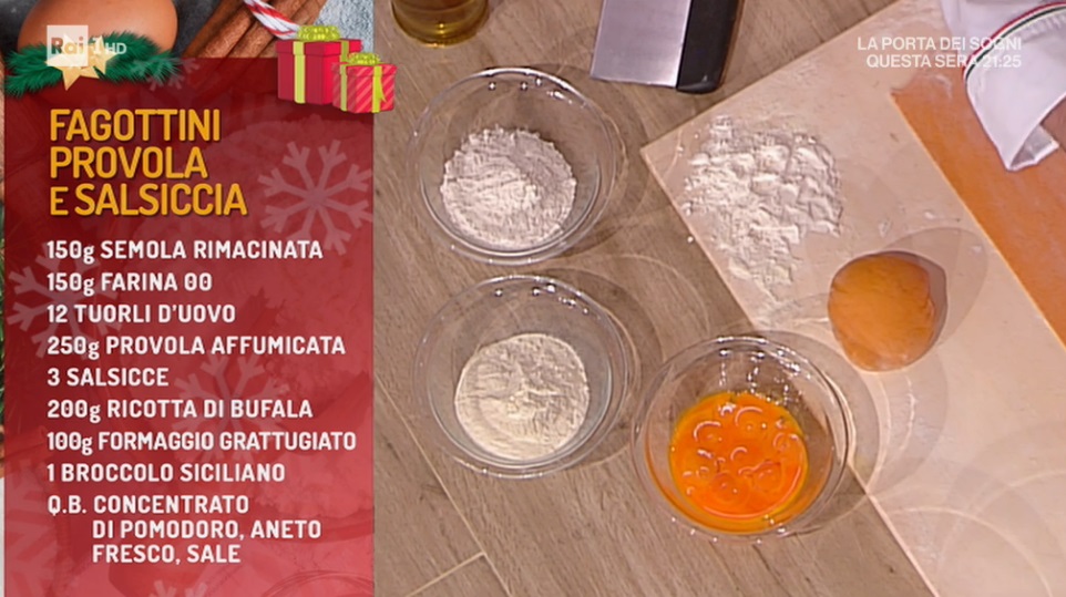 Diego Bongiovanni e Marco Rufini animano l’ultimo duello di questo periodo festivo: da martedì, tutto tornerà alla normalità (purtroppo!). I due sono chiamati a preparare un piatto originale con gli avanzi del frigorifero. Marco Rufini prepara un fagottini provola e salsiccia.