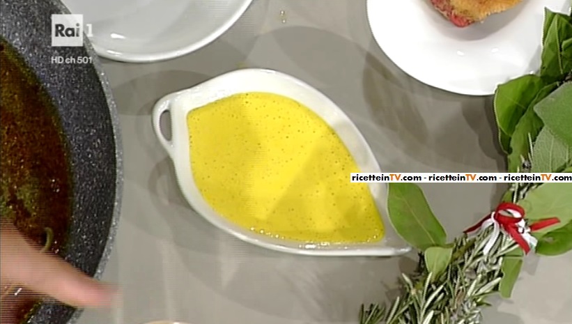 Per il filetto: 300 g filetto di manzo, 30 g farina, 1 uovo, 100 g pangrattato, 1 spicchio di aglio, 1 rametto di rosmarino, 1 rametto di salvia, olio evo, fiocchi di sale di Maldon