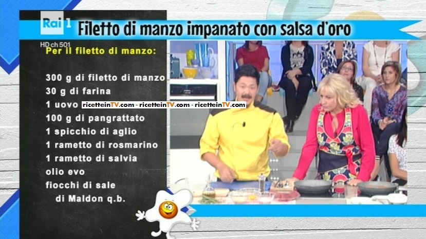 Proseguiamo nel nostro menu con un secondo piatto dal sapore esotico… a proporlo, infatti, è il cuoco nipponico Hiro Shoda, che oggi propone un secondo a base di manzo. Ecco la ricetta del filetto di manzo impanato con salsa d’oro.