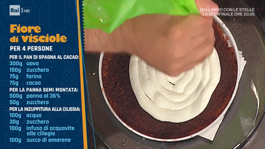 Chiudiamo la settimana… in dolcezza! Il merito è di Sal De Riso, il pasticcere dei pasticceri, che con un delizioso frutto di stagione, le visciole (simili alle ciliegie, ma più aspre), prepara una torta scenografica e golosissima. Ecco il fiore di visciole.