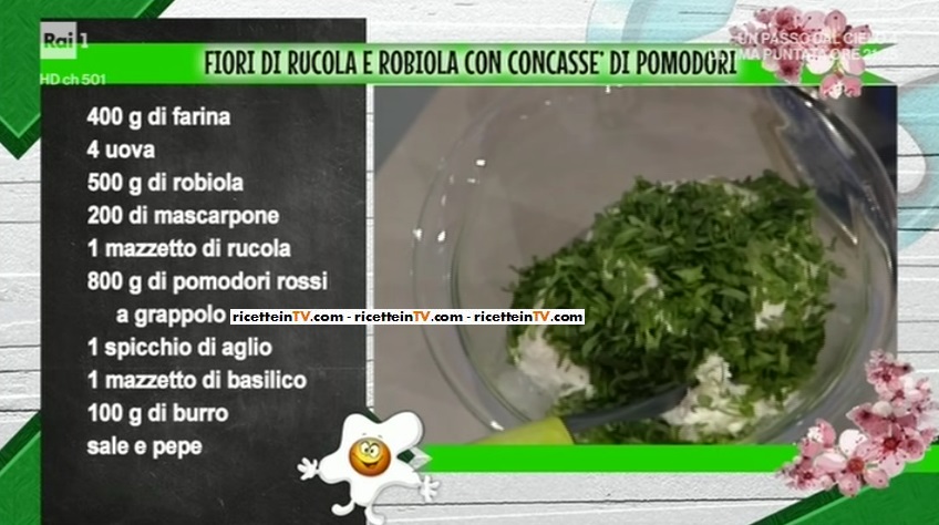 “La prova del cuoco”: fiori di rucola e robiola con concassè di pomodori di Alessandra Spisni