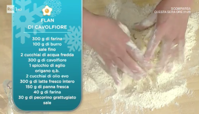 Ad aprire la prima settimana natalizia di quest’anno è la scoppiettante Alessandra Spisni, che quest’oggi prepara una torta salata a base di cavolfiori, straordinario ortaggio di stagione. Prepariamo il flan di cavolfiore.