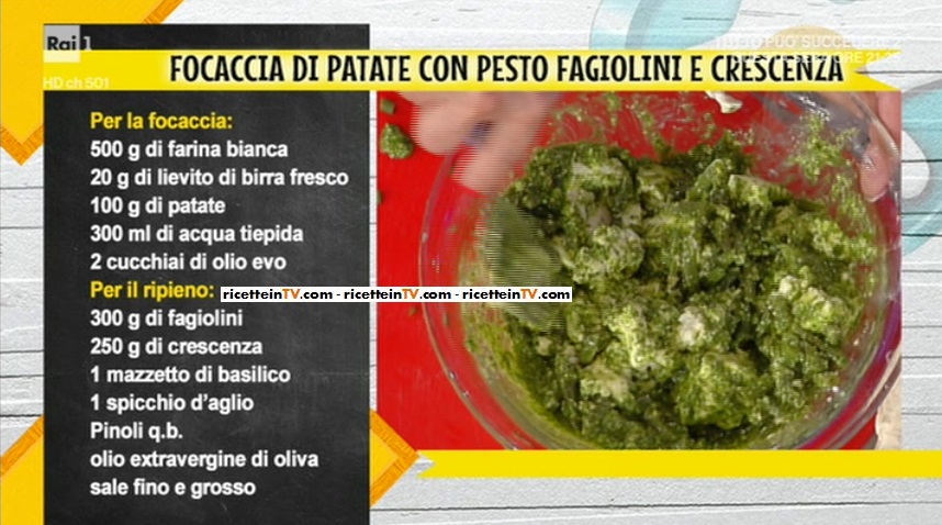 - Per il ripieno: 300 g fagiolini, 250 g crescenza, 1 mazzetto di basilico, 1 spicchio d’aglio, pinoli, olio evo, sale fino e grosso