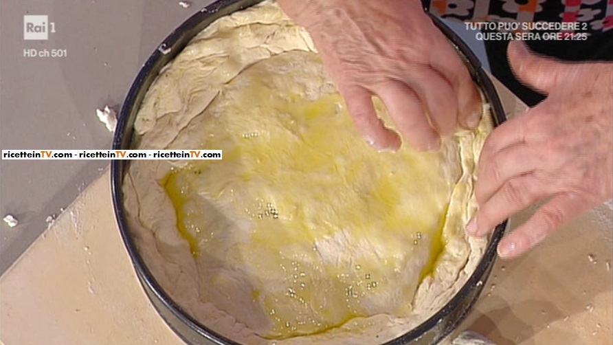 Partiamo dall’impasto. In una ciotola mettiamo la farina ed il lievito sbriciolato. Uniamo la purea di una patata lessa e fredda, l’olio e poca acqua tiepida. Cominciamo ad impastare, aggiungendo man mano l’acqua rimasta ed il sale. Lavoriamo per lungo tempo, circa 10 minuti, Mettiamo in una ciotola, copriamo con la pellicola e facciamo lievitare per circa 1 ora.