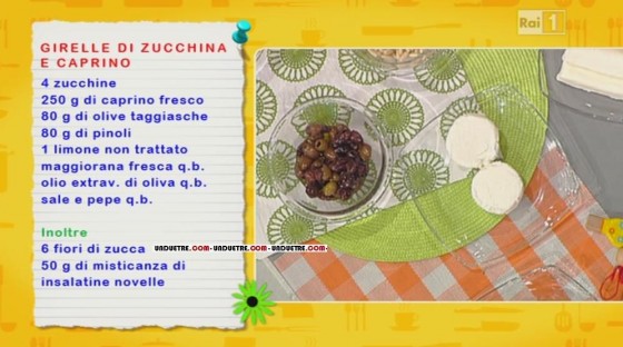 Vi proponiamo una gustosa ricetta realizzata in una delle ultime edizioni de La prova del cuoco. ‘L’appetito vien mangiando‘ introduce Sergio Barzetti, il maestro di cucina di oggi che propone un piatto fresco e estivo: le girelle di zucchina e caprino. Partiamo dagli ingredienti.