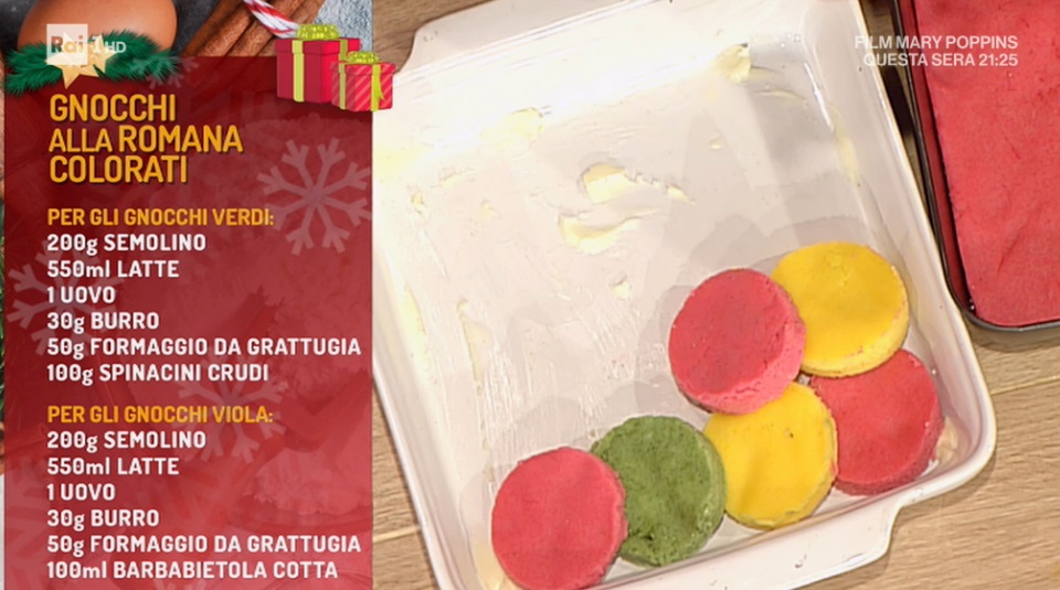 - Per gli gnocchi viola: 200 g semolino, 550 ml latte, 1 uovo, 30 g burro, 50 g formaggio da grattugia, 100 ml barbabietola cotta