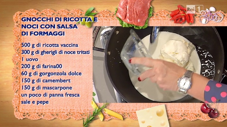 La ricetta degli gnocchi di ricotta e noci con salsa di formaggi di Alessandra Spisni del 20 novembre 2014 – La prova del cuoco