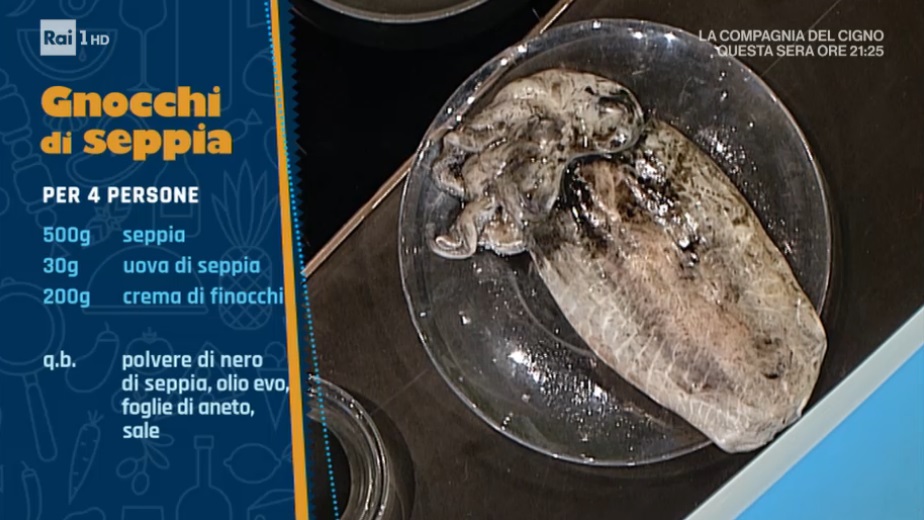 gnocchi di seppia di Pino CuttaiaChiude la puntata di oggi Pino Cuttaia, lo chef stellato del ristorante La Madia, in provincia di Agrigento. La sua è una cucina verace e legata al territorio, quindi alla sua terra, la Sicilia. Pino cucine le seppie, proponendo degli gnocchi di seppia.